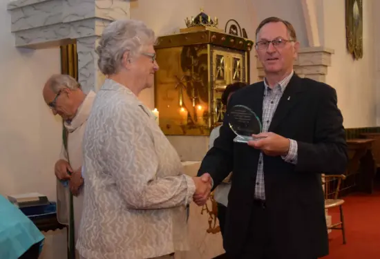 De heren: Jan Verstegen (organist) – Wim Rutten en Cees de Klein ontvingen een onderscheiding van de St. Gregoriusbond voor hun 40-jarig jubileum.