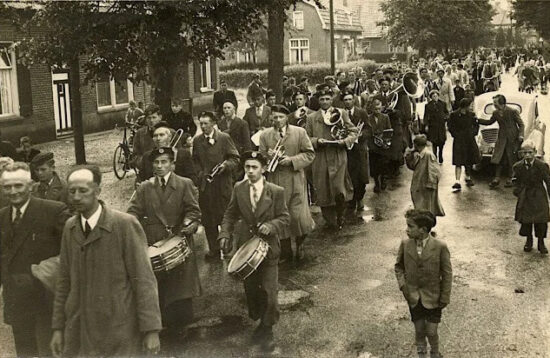 Ten einde wat beter bij kas te komen zitten, werden er in de beginperiode toneelopvoeringen gegeven. Uiteraard eentje voor de vrouwen (die moesten voor het donker thuis zijn) en eentje voor de mannen, want van gemengd kijken had toen nog niemand gehoord. Hent Hendriks herinnert zich de processies nog goed, dat was een zware tocht. “Je liep constant over grintwegen, dus dan weet je het wel”. Dat was ook de reden, dat bij de processies naar Handel, de instrumenten pas bij huize Padua uit de kisten gehaald mochten worden.