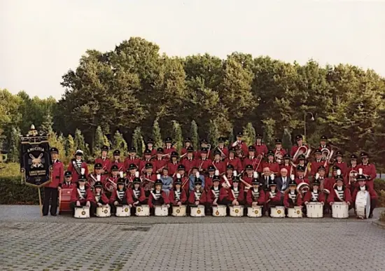 3e rij: Kitty Emons (tambour-maitre) – Jan Derks – Tonny van Dalen – Peter Verstegen – Marieke Lamers – Willy Derks – Tom Verstegen – Henry van Ras – Ermerd-Jan vd Burgt – Peter Derks Peter van Ras – Gerold vd Burgt – Hetty van Dalen – Marga Bongers – Toon Verstraten en Toon Franken (vaandel)