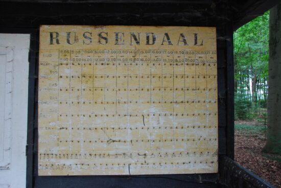 Oude ophangbord bij de tennisbaan