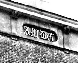 Foto van de oude afkorting op de gevel