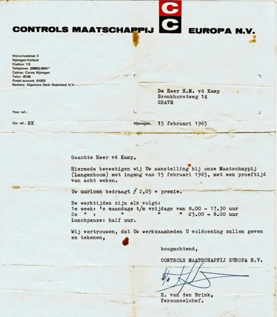 De aanstellingsbrief van Henk van de Kamp..