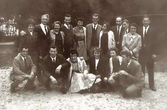 Boven: Vrouw van Arie van Diepenbeek – Harrie vd Wijst – Nelleke vd Wijst-Habraken – Tien Verstegen – Miep Verstegen-Jans – Rien Gremmen – Betsie Bens – Huub Graat (Techn. dienst) – Pasmans (onderbaas) – Vrouw van Jan Lamers – Jan Lamers