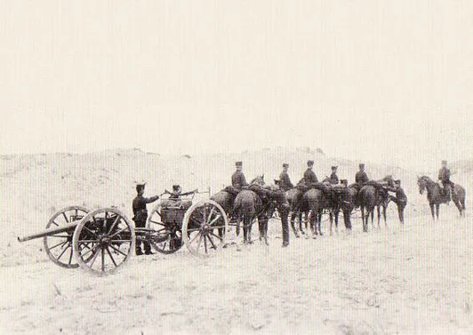 Dit was eigenlijk een antiek kanon, dat in het museum thuis hoorde. Zestig jaar eerder, nl. in 1880 kwamen de kanonnen uit de fabriek van Krupp te Essen in Duitsland rollen. Ze behoorden toen tot de modernste ter wereld met een vuursnelheid van 2 schoten per minuut. Het waren geen voorladers meer, maar achterladers. Ze moesten nog wel met gescheiden munitie geladen worden, dus eerst een granaat en daarachter een drijflading (kruit apart verpakt, de z.g. kardoes) aanbrengen. Bij ieder schot steigerde het kanon en schoot een stuk naar achteren en dan moest men weer opnieuw gaan richten. Ze konden ong. 5 km ver schieten, maar waren maar tot 3 km nauwkeurig. Ze werden 8 Staal genoemd, omdat ze al van staal waren gegoten en niet meer van brons, zoals eerder altijd gebeurde en de 8 stond voor de 8cm doorsnee van de granaten. In 1932 werden de kanonnen afgevoerd bij de troepen en opgeslagen in depots. Misschien kwamen ze nog ooit van pas, je weet maar nooit.
