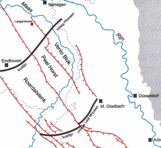 De breuk nabij Uden is in de loop van de laatste miljoen jaren liefst 180 m geworden, dat wil dus zeggen dat waar de bodem eerst aan elkaar vast zat ze nu 180 m in hoogte is gaan verschillen. Dat gaat niet verschrikkelijk hard, men denkt aan ongeveer 3 cm per eeuw, maar toch wel zoveel dat hier aardbevingen kunnen voorkomen, als plotseling de aarde enkele cm verschuift. De breuk bij de Maurik (de zogenaamde Grave breuk) in de korst van de aarde is niet zo groot, maar toch waarschijnlijk rond de 50 m.