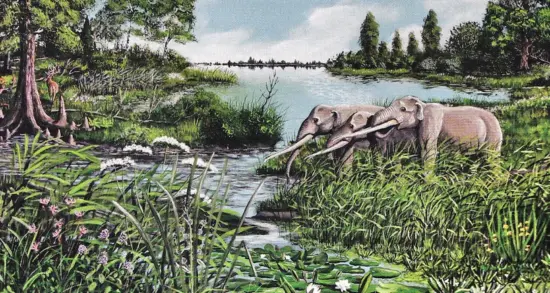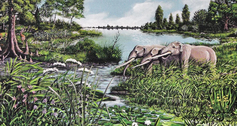 Zo zag Langenboom er ongeveer 2 miljoen jaar geleden uit, met o.a. mastodonten