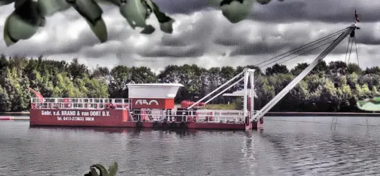 De zandzuiger die in de plas dreef, reikte met zijn zuigmond tot een diepte van ruim twintig meter. Duikers zijn gaan kijken hoe dat in zijn werk ging.