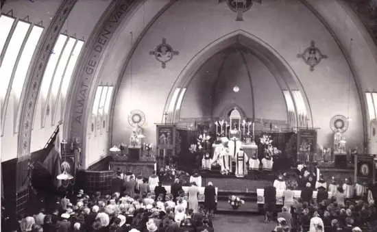 Broeder Michiel knielt bij het altaar. Rechts knielend: Koos Willems