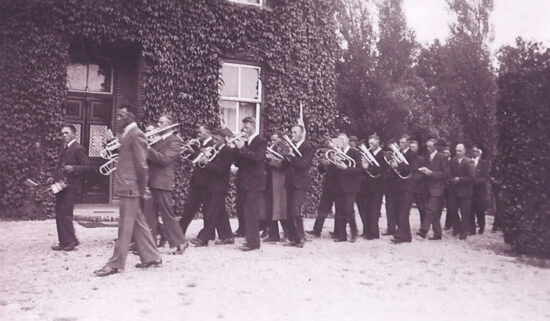 Natuurlijk ontbrak fanfare “Amicitia” niet met als dirigent Koos Arts. Met kleine trom Piet Jans. Met bugel Toon Theunissen.