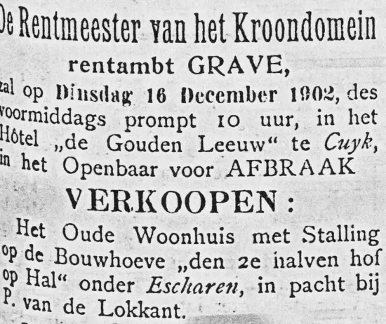 In dat jaar komt via Uden uit Schaijk Egbertus van Gaal op de “Eersten halven hof op Hal” boeren. Zijn vrouw heette Maria Hendriks. Hij blijft hier een lange periode tot 1924. Hij is de vader van o.a. Antonius van Gaal, die later in Langenboom kassier van de Boerenleenbank zou zijn, maar ook een herberg en levensmiddelenwinkel zou runnen. Een andere zoon Willem volgde hem in 1924 op de boerderij op. Deze Willem heeft veel pech in zijn leven gehad.