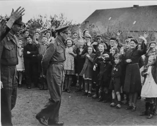 Iedereen was diep onder de indruk van het gigantische moderne gemotoriseerde materieel. Ze beleefden een historisch moment. Sommigen reden zelfs een stukje mee. Bijna iedereen ging daags daarna weer terug. Tijd om thuis te gaan eten nam men bijna niet. Men kreeg geen honger, want ze kregen van de bevrijders van alles: chocolade, biscuits, sigaretten en wit brood. De bevrijders werden overal enthousiast toegejuicht en iedereen probeerde wat Engelse woorden te leren. Toch bleef het gevaarlijk, want de Duitsers vielen zeer onregelmatig aan. Menigmaal moest er dan ook in sloten gedoken worden of achter huizen dekking worden gezocht. De Engelse soldaten bleven er zeer rustig onder. Tijdens zo’n luchtgevecht keken ze toe en rookten hun sigaretjes.
