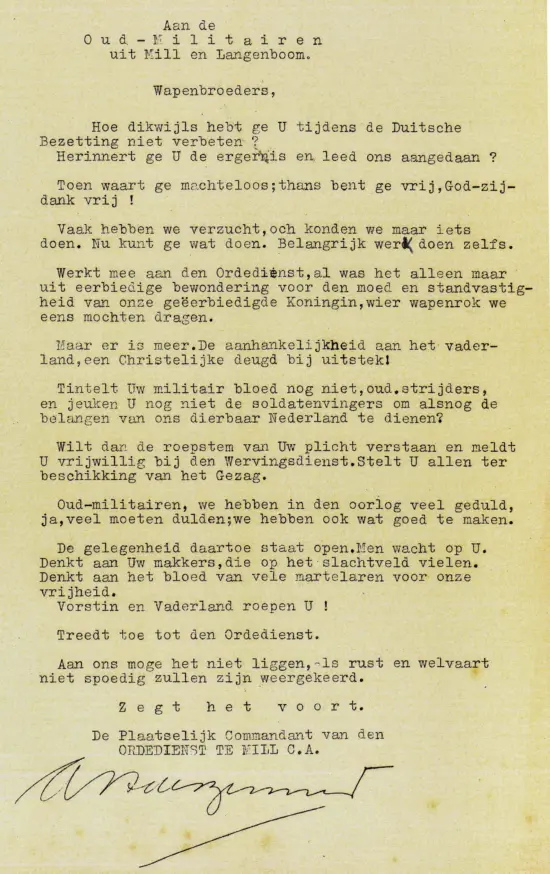 Nu Langenboom bevrijd was, moest er veel weer op poten worden gezet. Tot leiders van de Ordedienst alhier werd benoemd Herman van Kuppevelt, later huisarts in Volkel en Jo Gerrits.