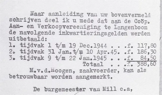 Door het inzetten van gedwongen hulp van boeren met paard en kar en arbeiders met schoppen (ook uit Langenboom) werd alles zo snel mogelijk hersteld. Veel boeren probeerden onder deze gedwongen arbeid uit te komen. Vaak was het paard kreupel, maar dan moest je de veearts wel mee hebben met een bewijsje, want de controle was streng.