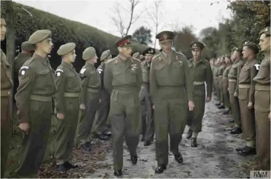 George VI, in gezelschap van Veldmaarschalk Montgomery, een bezoek aan het hoofdkwartier bracht.