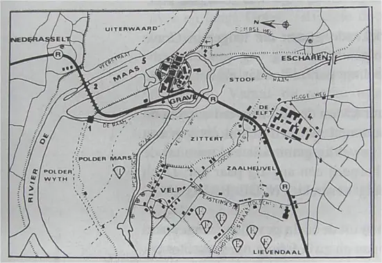 Kaartje van de luchtlandingen op 17 september 1944 bij Grave
