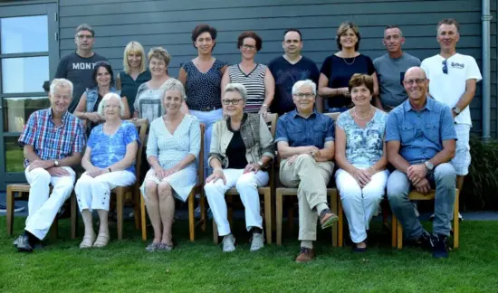 Onderste rij zittend: Rian v.d. Heijden – Emiel v.d. Hoogen – Bas van Kuppeveld – Jeroen Peters – Monique Selten – Monique Meulepas – Claudia v.d. Ven – Marty van Gaal – René de Klijn – Marlies van Limbeek – Nancy de Klein