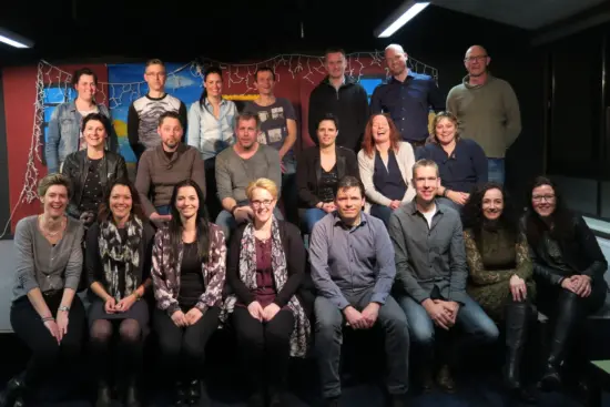 Bovenste rij: Esther Verberk- Emiel Hendriks – Anja van Berlicum -.- Noud v.d. Linden – Eelkje Huvenaars – Jolanda Albers – Fedor v.d. Burgt – Jolanda Kuypers – Martijn Cuppen en Angela Rutten