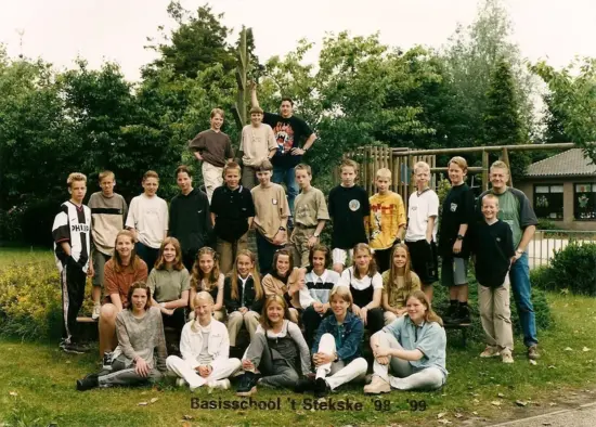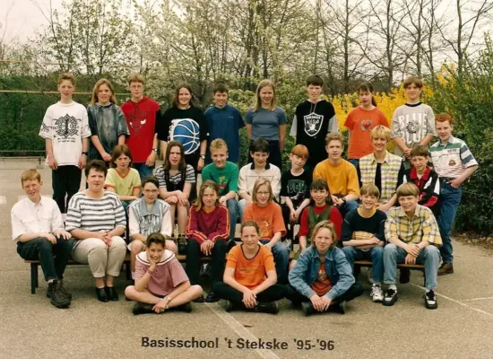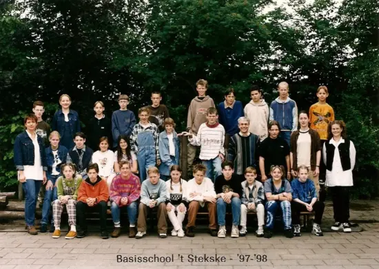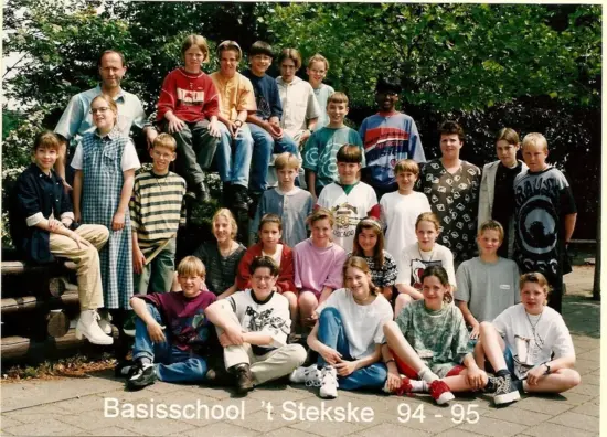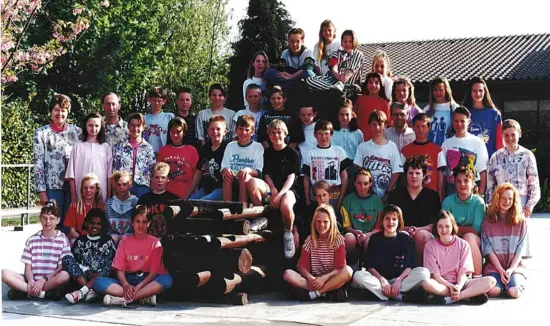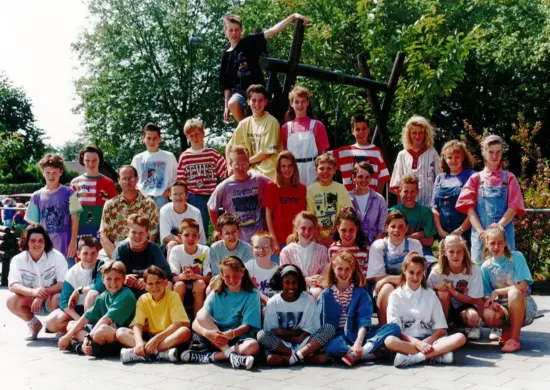 Van links naar rechts: Roel Janssen – Dhr. Jos van Boekel – Jules Meulepas – Sandra Leenders – Juffr. Marij Doeleman – Rob Thelosen – Jaap v.d. Vorle – Heidy Bergmans – Jeroen van Bommel – Yvonne Meulepas – Edwin Verbruggen – Hanneke Bens – Marko Wijdeven – Anja Albers – Ilse v.d. Wijngaard – Vincent Klarenbeek – Claudia van Vught – Wilco Emons – Veronique Aalbers – Frank Hendriks – Karin de Klijn – Reggie v.d. Ven – Anika v.d. Heuvel – Marton de Klein – Juffr. Annie van Gent – Rob Siroen – Monique Martens – Debbie van Hal – Sebastiaan van Alphen – Dhr. Toon Ermers –