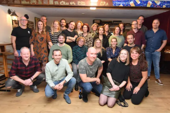 Derde rij: Monique v.d. Ven – Saskia Buts – Sonja Sommers – Dimitri van Hal – Paul Thelosen – Joffe v.d. Heijden – Mike Janssen – Johnny v.d. Biggelaar – Frank Cornelissen – Tamara de Kleijn en Stefan Albers.