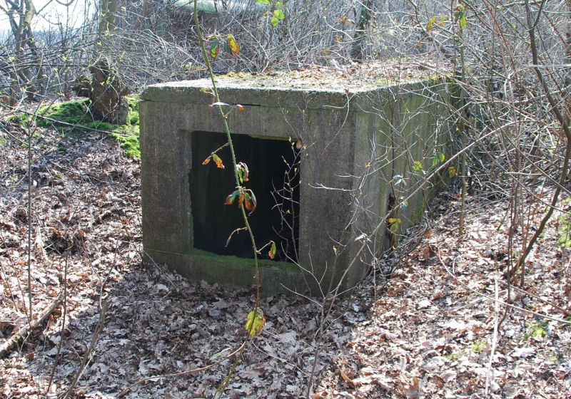 Langs het fietspad in een sloot, vlakbij het Schuttersveldje, ligt nog steeds deze bunker. De soldaten gebruikten hem als onderkomen bij een zoeklicht en als EHBO-post