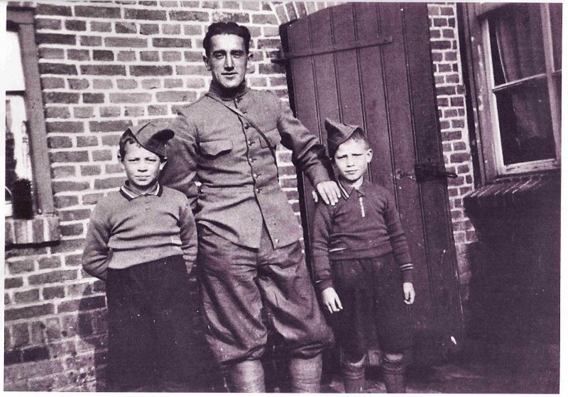 Jan Bongers (links) en Toon Bongers met tussen hen in een ingekwartierde soldaat