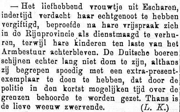 Toch komt de vrijgesproken Johanna nog een keer in het nieuws als de Limburgse Krant het navolgende meldt: