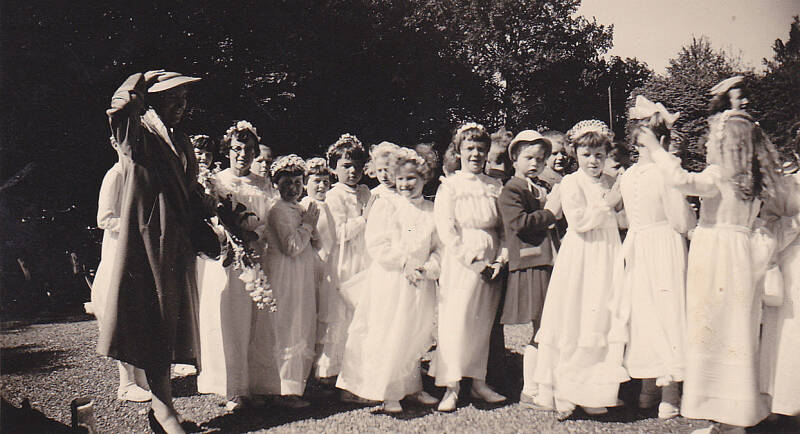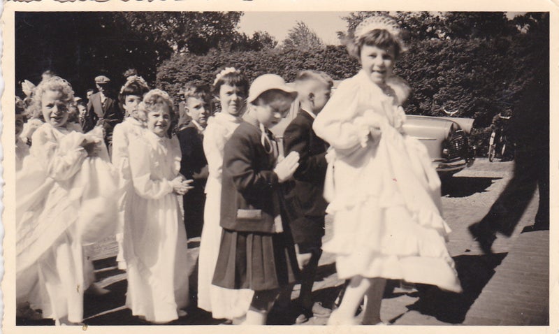 Wie deden de 1e Communie, hier op weg van het klooster naar de kerk.?
