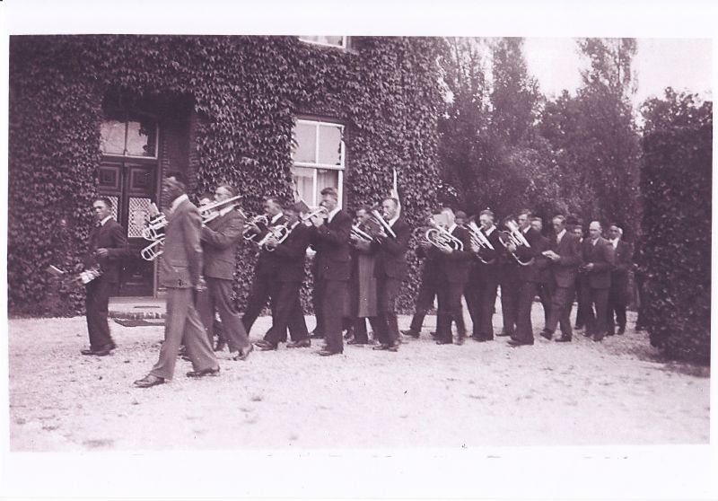 Zittend: Ben van Kuppeveld (instr) - Toon Ermers - Piet Brans - Wim Janssen (dir)- Hendrik Derks - Will van Raay - Jo Verstegen - Tiny v.d. Ven - Toon Theunissen - Jan Verstegen - Klaas van Kuppeveld - Pastoor H. van Ooy en Nico Peters